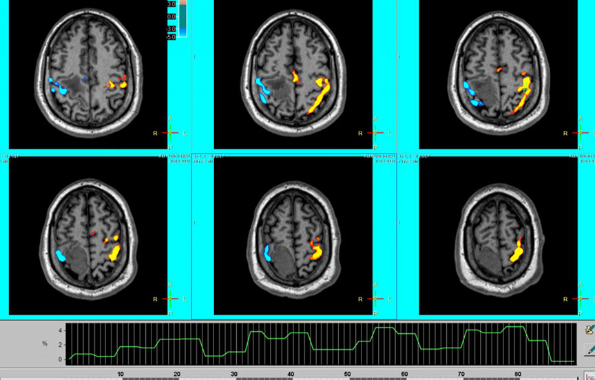 La resonancia magnética funcional permite por ejemplo medir el metabolismo de un área cerebral en tiempo real mientras el paciente realiza una tarea, como mover la mano, leer un texto o ver una película. La activación de las áreas estimuladas permite graficarlas en mapas de colores, siendo esta información de gran utilidad en planificación del las neurocirugías.
